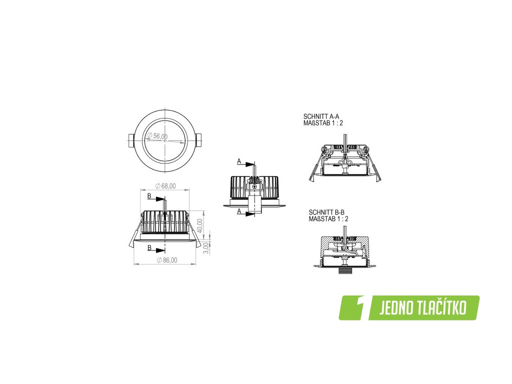 - Integrovaný senzor jasu (rozsah měření 0 … 32 000 lx)